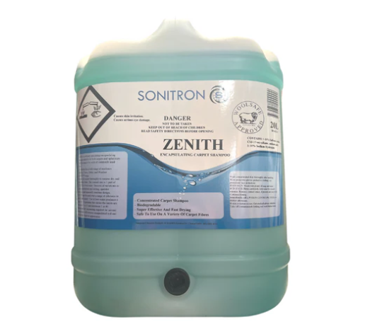 Sonitron Zenith Encap Shampoo is a cutting-edge carpet cleaning solution designed for restoration shops to deliver spotless, long-lasting results. Its advanced encapsulation technology cleans deeply, trapping dirt and stains for easy removal via dry vacuuming, preventing resoiling and maintaining vibrant carpets in high-traffic areas.