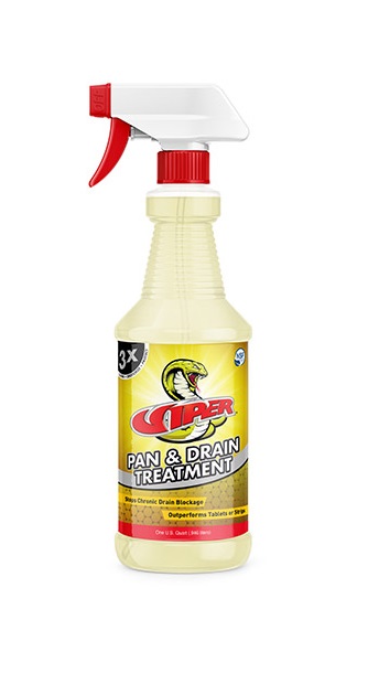 Viper Pan & Drain Treatment (Part/Code: RT800S) is a powerful gel designed to break down slime, sludge, sediment, and odor-causing bacteria in HVAC/R systems. Combining detergents, enzymes, and silicone, this treatment penetrates deeply to remove buildup and prevent future soil adhesion. The silicone coating helps improve flow and prevents blockages by providing a non-stick surface on pans, P-traps, and drain piping. Unlike conventional tablets or strips, Viper Pan & Drain Treatment outperforms and lasts longer, ensuring cleaner and more efficient systems.